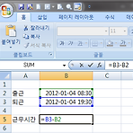 엑셀에서 조금 생소하고 애매한 부분이 바로 날짜와 시간 개념일 것입니다. 오늘은 엑셀에서 시간과 날짜 개념 중 시간 추출 함수인 HOUR(), MINUTE(), SECOND() 함수에 대해서 알아보도록 하겠습니다. 우선 시간 개념을 설명해 드리기 위해 아래와 같은 표를 준비하였습니다. 단순히 출근 시간과 퇴근 실간을 기록하였고, 점심시간을 무시한 채 총 근무시간을 구해 보았습니다. 이 경우 셀서식이 시간일 경우 11:00:00 이 계산되어 질 것이고, 셀서식이 일반일 경우에는 0.469039352 의 형태로 타나날 것입니다. 엑셀에서 일반 형식에서 날짜와 시간을 나타내는 경우는 위와 같이 소숫점 형태로 나타나게 되는데요, 소수점 앞자리의 정수 부분에는 날짜가, 소수점 이하 부분에는 시간이 나타나게 됩니다..